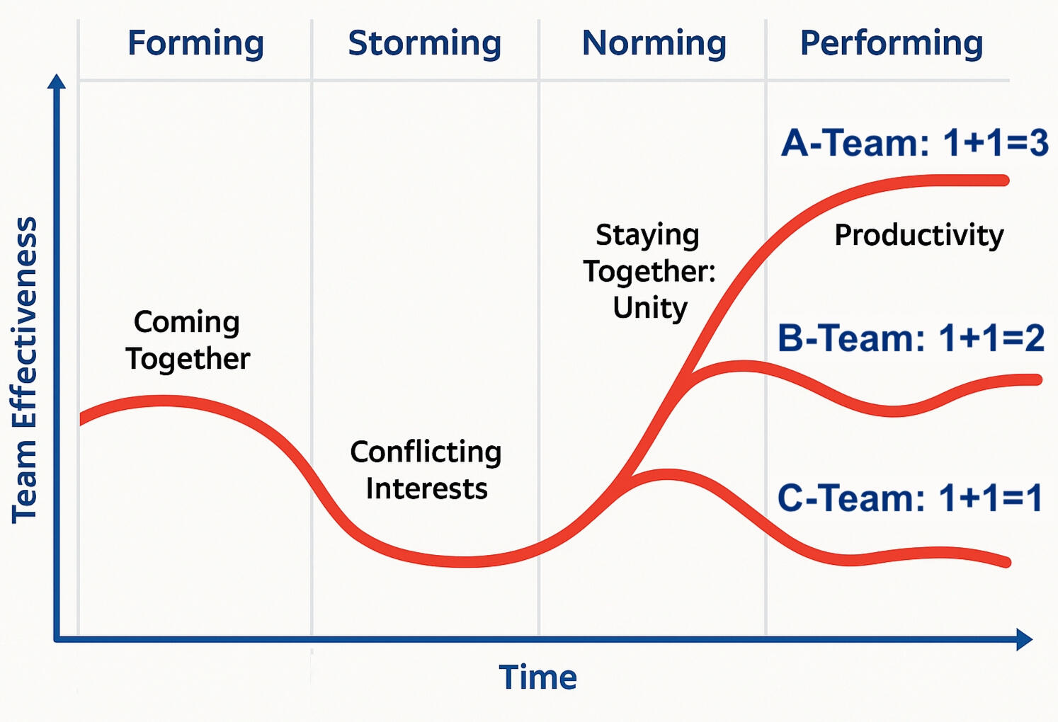 Every team passes through four natural stages: Forming, Storming, Norming and Performing.But not every team makes it to the top. In fact, most teams settle - or slip.➡ A-TEAMS: SYNERGY IN ACTION